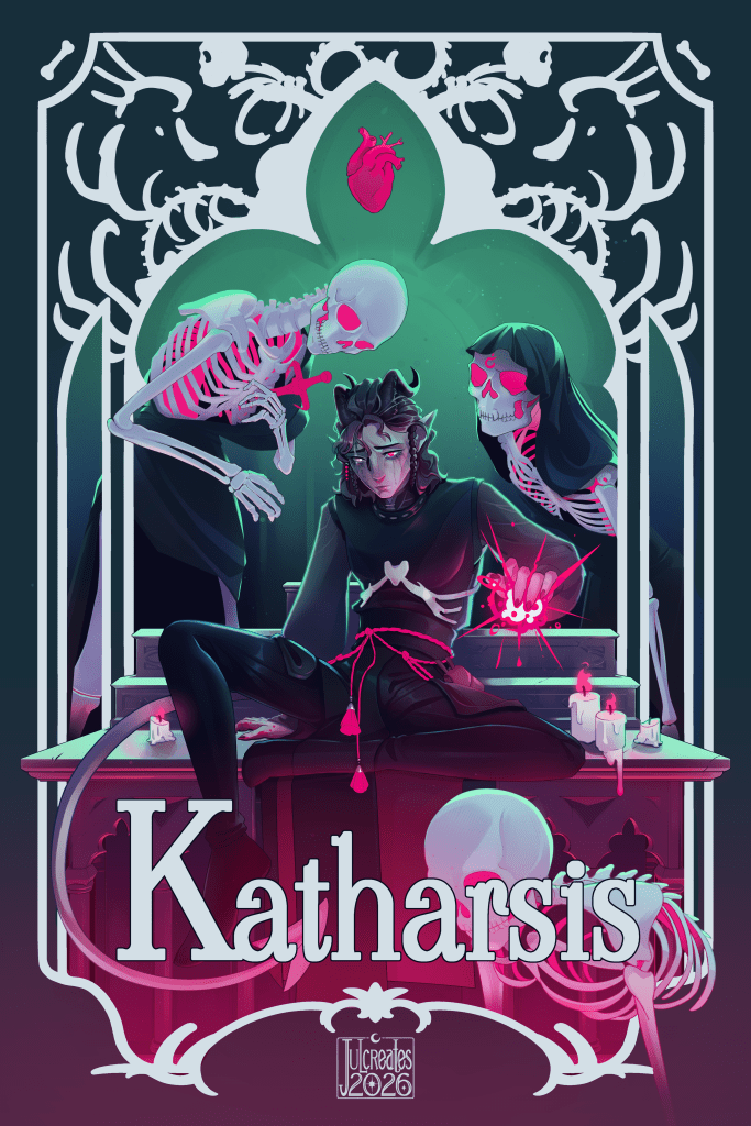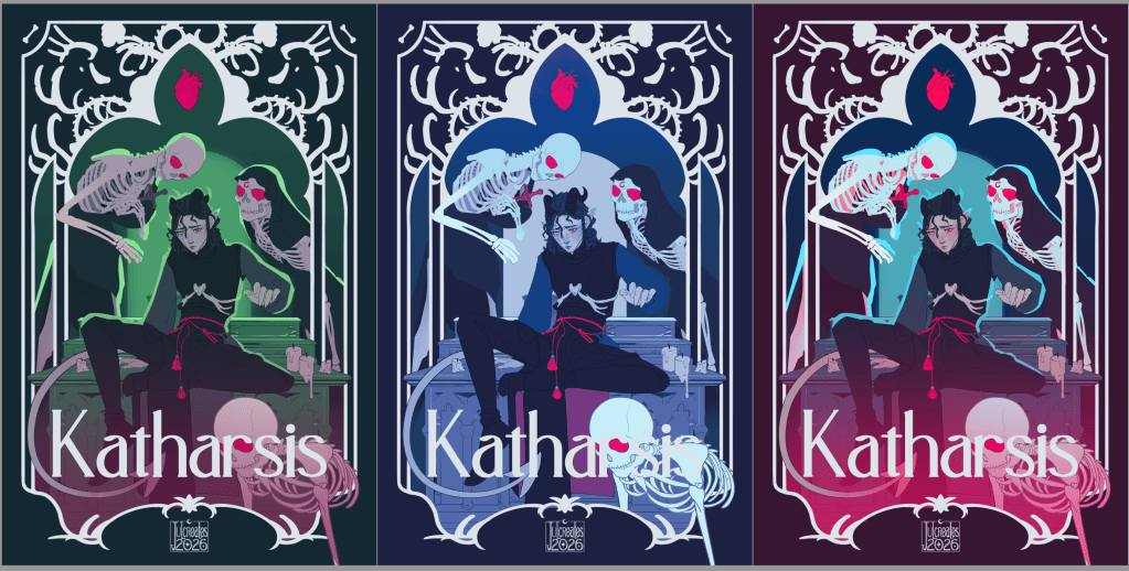 Fake Dustcover/Book Cover personal illustration project for one of my characters (‘Katharsis’)